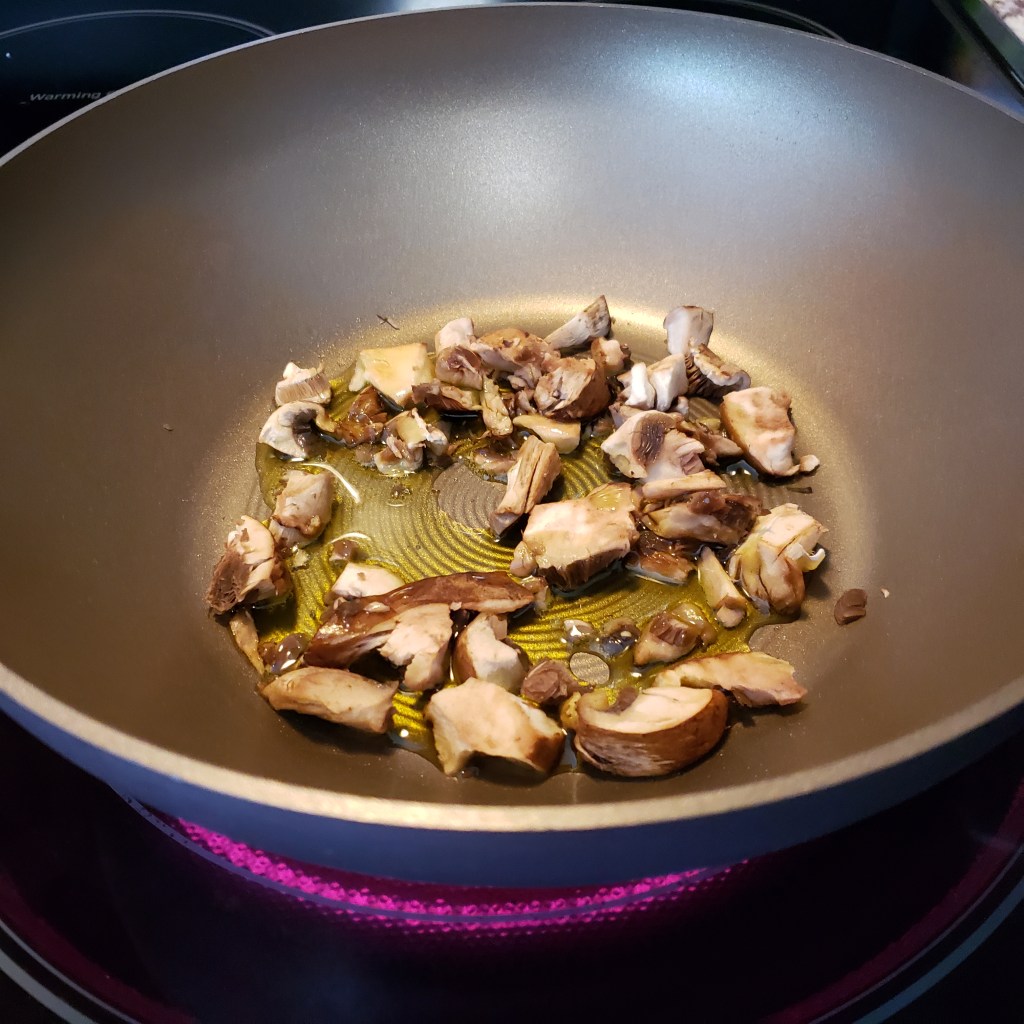 - 1/4 cup of mushrooms (baby bellas or King Oysters work great!), chopped