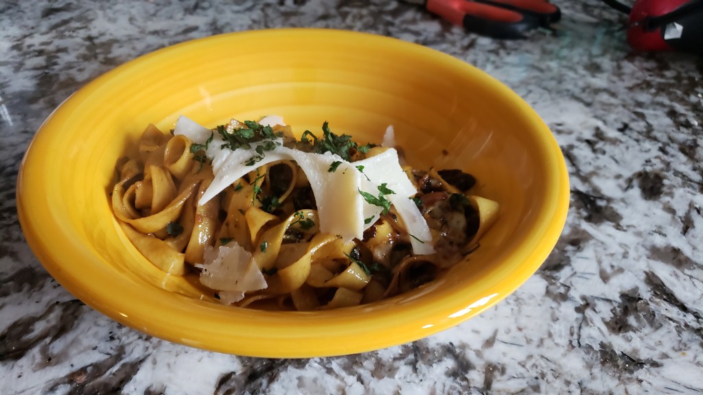 Amp it up with fresh ingredients! I love fresh pasta and a really nutty Parmesan, and this recipe with work great with either dry or fresh pasta as well as powdery or shaved Parmesan. Here’s the amped up version with fresh linguine and shaved Parm: