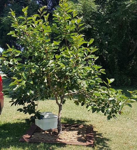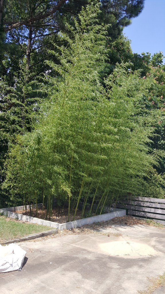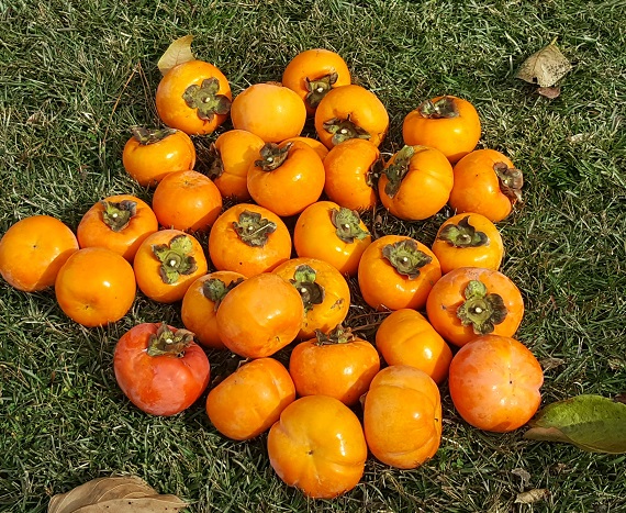Two plants most neighbors and visitors comment about are by my driveway – my bamboo grove and my “is that a ___ fruit tree” (they never guess right). The Sweetshoot bamboo is an edible variety with shoots coming up early, early spring. Right now, I’m trying to establish this clump, so I’ve not eaten the shoots yet. But one thing for sure is that this bamboo grows about a foot a day in the spring! Growing inside the bamboo container is also the non-edible Black Bamboo that is beginning to mature into beautiful shiny black culms which peeks through the blue hue of the dulcis bamboo. The fruit tree that is seemingly decorated with orange globes is my delicious Fuyu persimmon tree. It’s not a large tree at all, and I’ve had it since 2008, but I didn’t move it to its happy place until about 5 years later. Since then, it has given me bountiful thanks through these globes of yummy goodness.