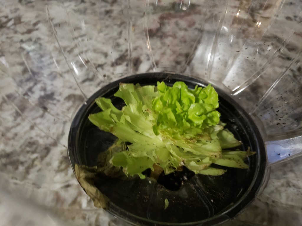 This last year, I got a kick out of trying to regrow lettuce from the store that comes in a clamshell. You know the type – it has a root ball attached to the tender leaved head. When I pulled it out of the container, I saw how vibrant and healthy the roots were, so I decided to put it in a pot and see what would happen. Lo and behold, I was getting another head of lettuce growing from the stump I’d cut off. I was able to get three total heads of lettuce from that plant. This past week, I got another head with a decent root ball, and within days of being cut back, it has already reached an inch in height.