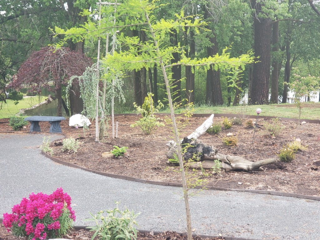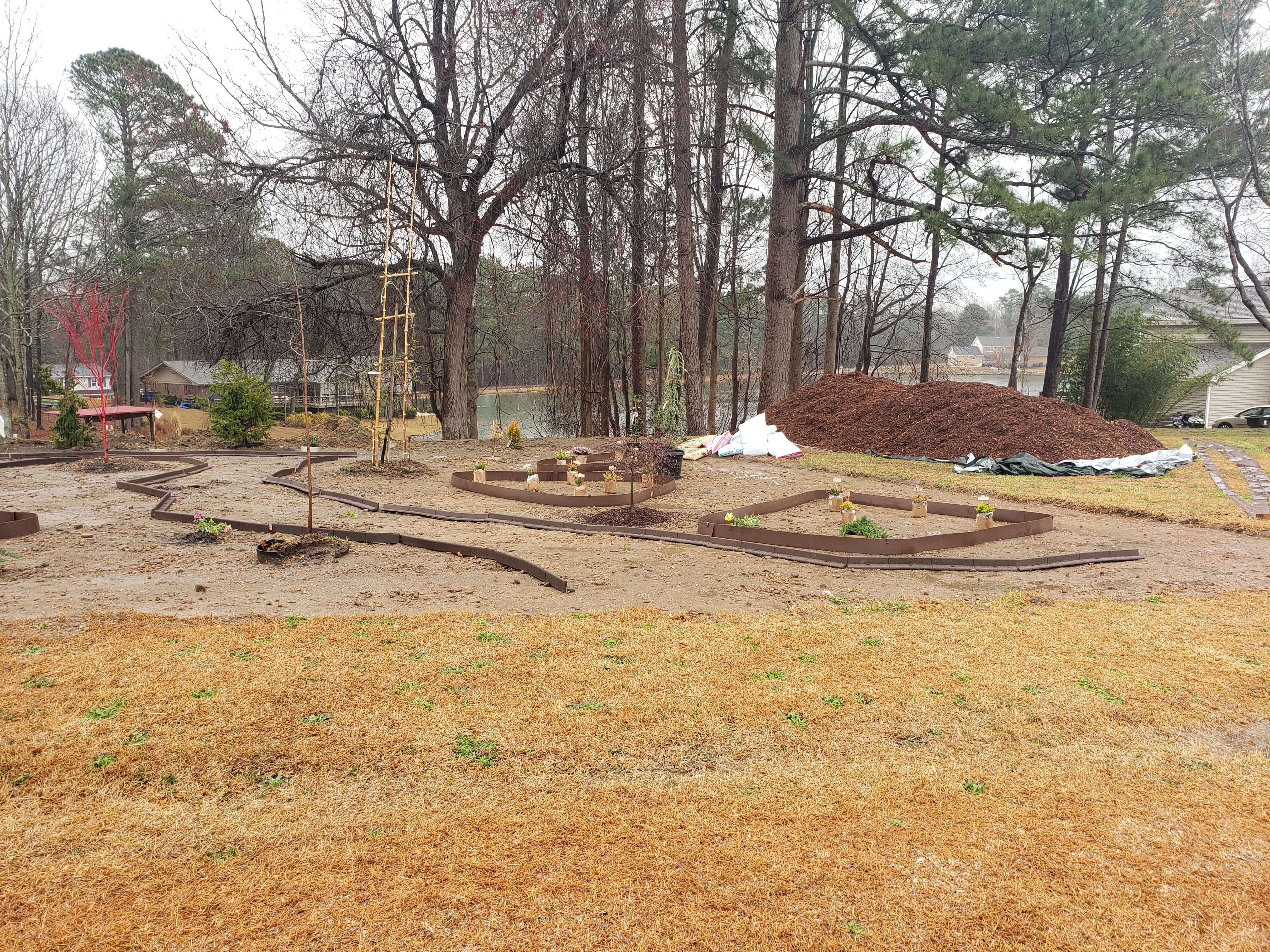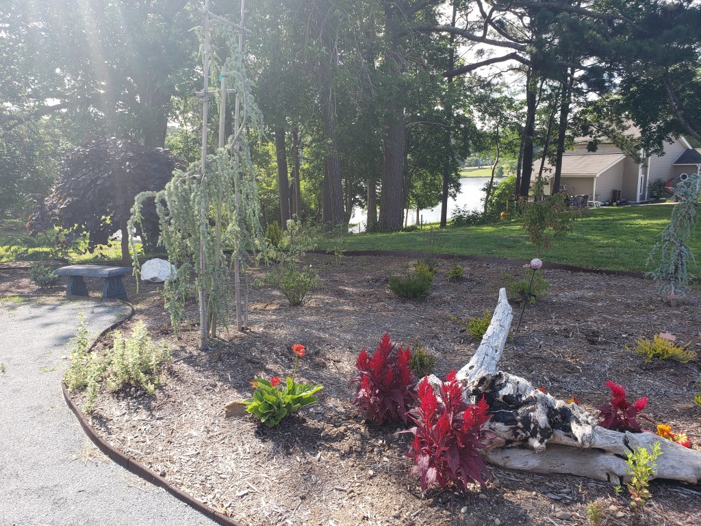 When I bought my house, the lot next door was vacant. Fourteen years later, it was still vacant with a For Sale sign. That was MY sign to buy it. In 2021, I stroked a check and started planning a beautiful garden where people who walk around the lake could stop and explore unique plants and even take home some herbs (I don’t use pesticides).