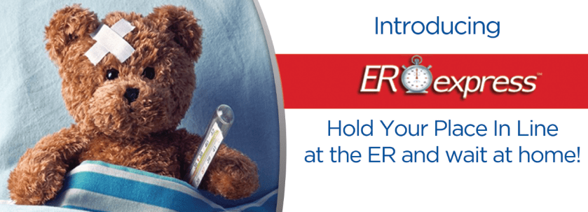 Postcard direct mail piece for ER Express, a service to hold your place in line for minor emergencies; this service was for Harnett Health, which is different than the one above it (InQuicker) for Central Carolina Hospital, the competing hospital.