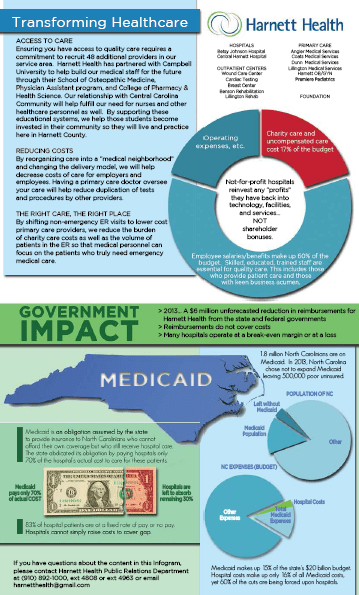 With the Medicaid Expansion on the line (it did not get passed), Harnett Health System would face serious financial turmoil, and we had to share with the community and stakeholders the need to have Medicare Expansion approved by the Governor.