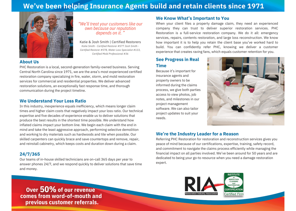 Oversized Agent Brochure for my client PHC Restoration in Lillington