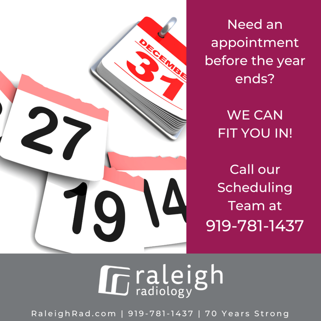 Call #RaleighRad at 919-781-1437 to schedule a screening at one of our imaging centers.
